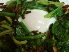ほうれん草の巣ごもり卵 いつものほうれん草のソテーが卵一つでワンランクアップの美味しさに早変わり!我が家の巣ごもり卵をお試しくださいね! ほうれん草の巣ごもり卵 ベー...
