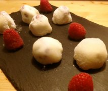 ガナッシュ入り☆ラズベリー大福 紅茶やコーヒーにも合う、洋風スイーツの大福。ラズベリーの大福は小さく仕上がるので作りやすく、食べやすい!冷やしてどうぞ。 材料 (小さ...