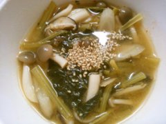 小松菜 ごぼう きのこのピリ辛味噌煮込み
