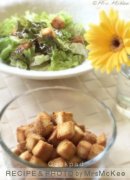 自家製クルトンでシーザーサラダ 食パンの耳がお洒落なクルトンに変身〜♪クルトンをのせて簡単シーザーサラダ♡ 自家製クルトンでシーザーサラダ パンの耳 オリーブ油 ガーリ...