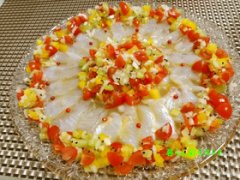 白身魚のラビゴットソース掛け お刺身に飽きた時はコレ!ラビゴットソースで彩り豊富♪食物繊維、ビタミン豊富、塩分の取り過ぎ予防にも☆ 材料 (2~4人分) 白身魚のお刺身...