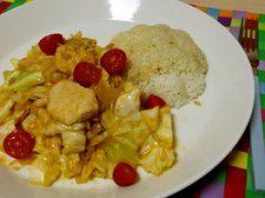 鶏キャベツのココナッツオイル甘味噌炒め。
