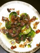 芽キャベツと生ハムのソテーガーリック風味