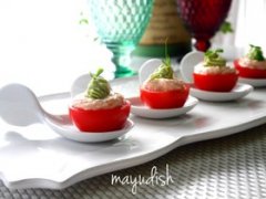 サーモンムースdeフィンガーフード サーモンムースとアボカドムースを 可愛いトマトカップに入れた フィンガーフード♡ ホームパーティーにどうぞ〜 サーモンムースdeフィンガー...
