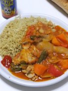 キヌアのクスクス風トマトシチューをかけて
