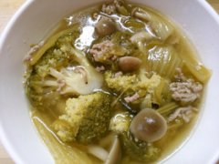 チンゲン菜挽き肉ブロッコリーの中華スープ