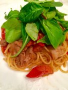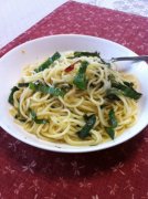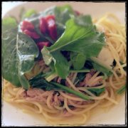 ツナのペペロンチーノ、ルッコラたっぷり!