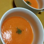 簡単時短!冷製キャロットジンジャースープ ミキサーにかけた冷製スープのモトを冷蔵庫に常備しておくと、火も時間も使わずにすぐ出せる魔法の一品に! 簡単時短!冷製キャロ...