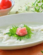 若草色の豆乳スープうどん☆タラコのせ 優しいグリーンの豆乳のスープでうどん。 パウダーにした緑茶がグリーンの秘密。 アクセントのタラコをほぐしながらどうぞ! 若草色の豆...