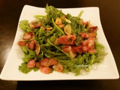 めちゃうま♪春菊とベーコンのサラダ 春菊が好きならぜーったいにオススメです!カリっと焼いたベーコンと相性抜群。絶賛されます♪ めちゃうま♪春菊とベーコンのサラダ 春菊...