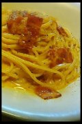 トムズキッチン特製・親子カルボナーラ バイト後、空腹と眠気と戦いながら作った結果の逸品。美味×体に毒。 トムズキッチン特製・親子カルボナーラ パスタ 卵卵黄 パルメザン...