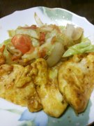 鶏胸とキャベツと玉葱のカレートマトソテー