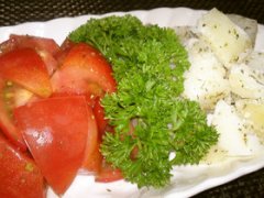 簡単!粉ふき芋とトマトのハーブ和え^^♪