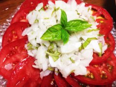 トマトのタマネギバジルドレッシング添え