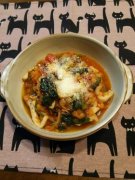 レンズ豆・鶏もも肉・ほうれん草のトマト煮