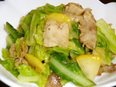 白菜とロースハムのマヨネーズ炒め