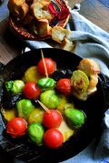 トマト×芽キャベツ×モッツアレラ アヒー 小ぶりのフライパンで作りそのまま豪快にテーブルにドーン。バケットを添えて。 豪快オシャレアヒージョでモテレシピ うちバル トマト...