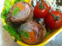 お弁当用に…豚こま肉でスタミナ野菜ロール