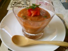 ポテトinガスパチョ あっさり食べやすい♪&しっかり食べるスープ! ポテトinガスパチョ じゃがいも ヨーグルト 玉ねぎ 胡瓜 ピーマン にんにく 青じそ エクストラバージンオリー...