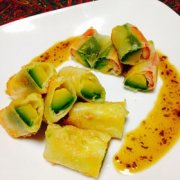 アボカド春巻★柚子胡椒ソースで アボカドとチーズを巻くだけ‼︎ カニかまと巻いたものも一緒に、少ない油で焼いちゃうお手軽春巻‼︎ おつまみに(^^) アボカド春巻★柚子胡椒...