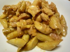 ☽鶏もも肉とごぼうのにんにく味噌炒め