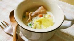 春野菜たっぷり♪はまぐりのチャウダー はまぐりと、皮ごと使った春野菜たっぷりの濃厚なチャウダーです♪ 材料 (5人分) ■ ≪酒蒸し用≫ オリーブオイル 大さじ1 にんにく(み...