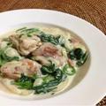 簡単☆ほうれん草とチキンのクリーム煮 Description 定番とろとろクリーム煮☆ ほうれん草がたっぷり食べられるます! 鶏もも肉もふっくらジューシー♪ 材料 (3人分) ほうれん草...