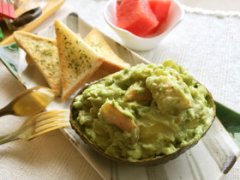 アボカドココット✿海老マヨポテサラダ 山葵のピリリとポン酢がアクセントのアボカドポテサラ。アボカドの皮を器に仕立てとってもキュートな朝食を食卓に♬ はーたんのおっか...