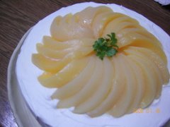 さわやか☆桃のデコレーションケーキ デコレーションの生クリームに水切りしたヨーグルトをくわえることで、とってもさわやかで夏らしいデコレーションケーキになりました。桃...