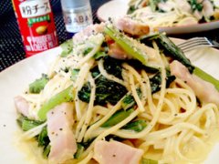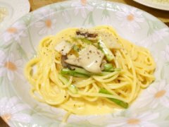 アスパラと新玉ねぎの全卵カルボナーラ☆