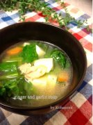 かぶの葉と豆腐のにんにくしょうがスープ