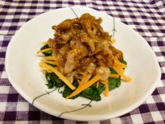 ほうれん草のおかずサラダ これだけで、お肉もお野菜も一緒にとれちゃうボリュームサラダです♪ 龍青空ママ 材料 (2人分) ほうれん草 1束 人参 1/3本 豚こま肉 100㌘...