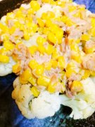 カリフラワーのシーチキンコーンマヨのせ♪ ゆでたカリフラワーにちょっとわさびを加えて和えた物をのせるだけ♪ ごくもり 材料 (4人分) カリフラワー 1 冷凍コーン 100g シー...