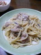 鶏肉ときのこの豆乳クリームパスタ