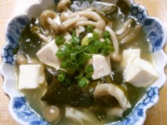 豆腐と ワカメ きのこのアジアンスープ♪