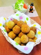 おつまみ(^O^)さつま芋コロッケ 手づかみで食べられる気軽さで何個でもどうぞ!黒ゴマ塩バター味が、ほっこりさつま芋の甘味を引き立てて冷めても美味しい~ 卯月のうさぎ201...