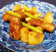 簡単豚バラブロックとポテトのアスパラ炒め