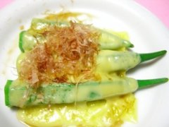 これ、いける!オクラ☆チーズ ビールに最高!ヘルシーな、おくらのおつまみです。とろとろチーズとおくらのとろとろがいいかんじ。醤油とおかかの和テイスト。おくらが...