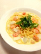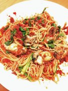 牡蠣と春菊のパスタ トマトソース