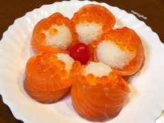 ノルウェーサーモンの親子巻き ノルウェーサーモンを軍艦巻き風に。カラフルでちょっとおしゃれ。パーティにも。鮭・サーモンカテゴリ掲載。 材料 (12個分) ノルウェーサーモ...