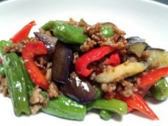 ししとう と なす の挽き肉 味噌炒め