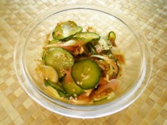 キュウリとスモークチキンの梅和え 梅干しを使ってさっぱり味に。 材料 (4人分) きゅうり 1本 スモークチキン 12切れくらいお好みで 青じそ 4枚 ■ 和え衣 梅肉 1~2こ分 みりん...