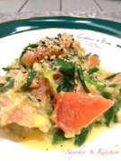 茄子とサーモンのカレーマヨネーズ炒め