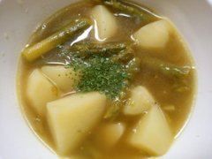アスパラと じゃが芋の バター醤油スープ