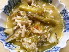 アスパラ ピーマンきのこ挽き肉のピリ辛煮