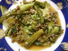 簡単!チンゲン菜と ししとう 挽き肉炒め