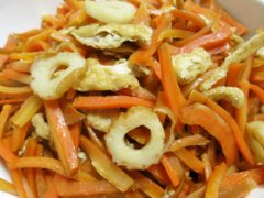 にんじん・油揚げ・ちくわの炒め煮。 食材をサラダオイルで良く炒め、めんつゆ・砂糖・醤油で簡単に味付け油揚げとちくわのいい味が利いてます。にんじんの消費に!。 材料 (...