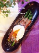 アスパラの生ハム巻き ポーチドエッグ乗せ
