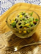 ひじきとレンコンのしゃっきりサラダ レンコンと水菜のシャキシャキ感が楽しいデパ地下風サラダ。白だしとごま油の風味をはるさめが吸って、さっぱり食べられます。 ひじきと...