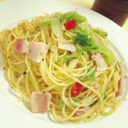 ベーコンとレタスのペペロンチーノ